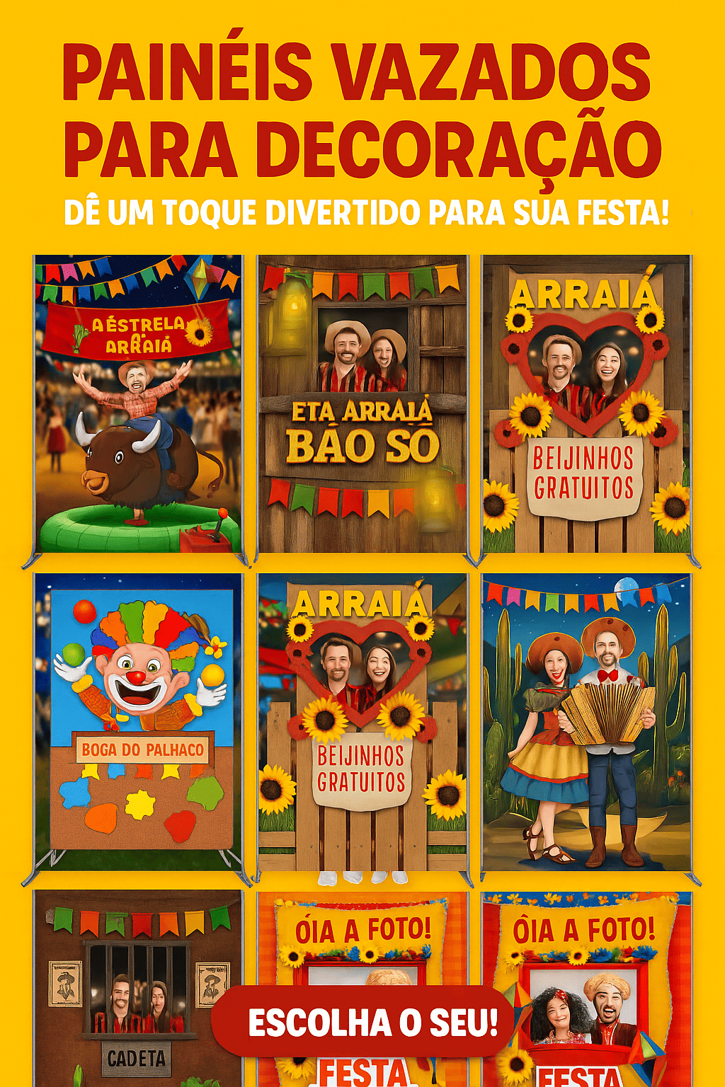 🎉 Painel Retangular Vazado Festa Junina 1,50x2,20m – 17 Modelos Incríveis! 🎉